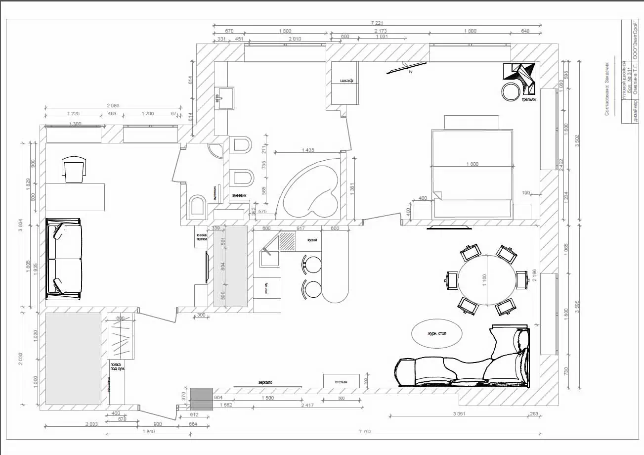 Первым делом специалист выезжает на замеры помещения. Исходя из оптимального варианта зонирования, дизайнер подготавливает проектную документацию для последующих ремонтных работ.
