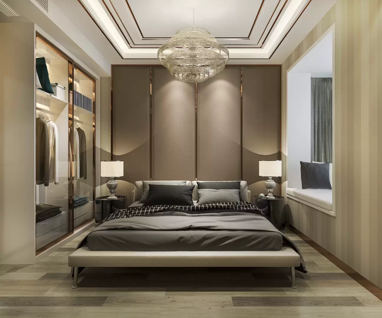 Если комната небольшая, то помимо кровати и, возможно, прикроватных тумб в ней ничего и не поместится. Но когда габариты спальни позволяют организовать и другие зоны, то в первую очередь стоит предусмотреть места хранения. Сейчас наиболее актуальны следующие решения: