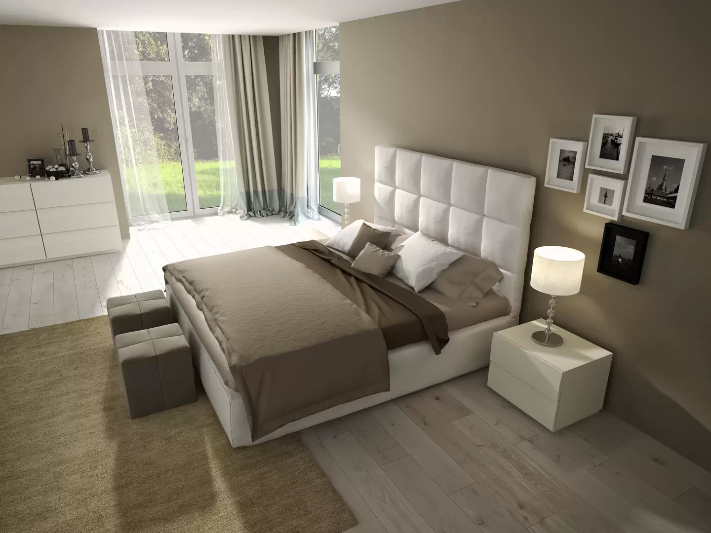 · Шкафы по обеим сторонам от кровати.