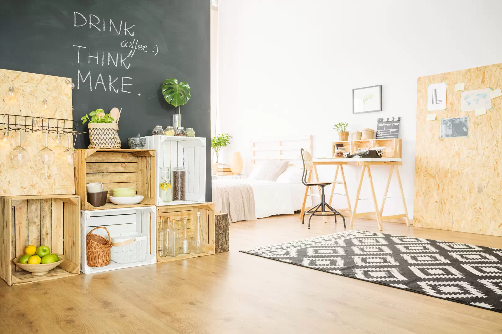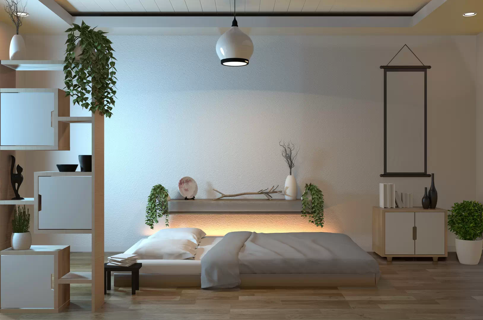 Это направление вобрало в себя лучшие черты обоих жанров. От скандинавского взяли практичность, упорядоченное хранение, натуральные материалы. От японского добавили сдержанность, простоту форм, низкую мебель, более тёплую и гостеприимную цветовую гамму. Оба стиля стремятся к минимализму и избегают лишнего декора – это осталось и в основе джапанди.