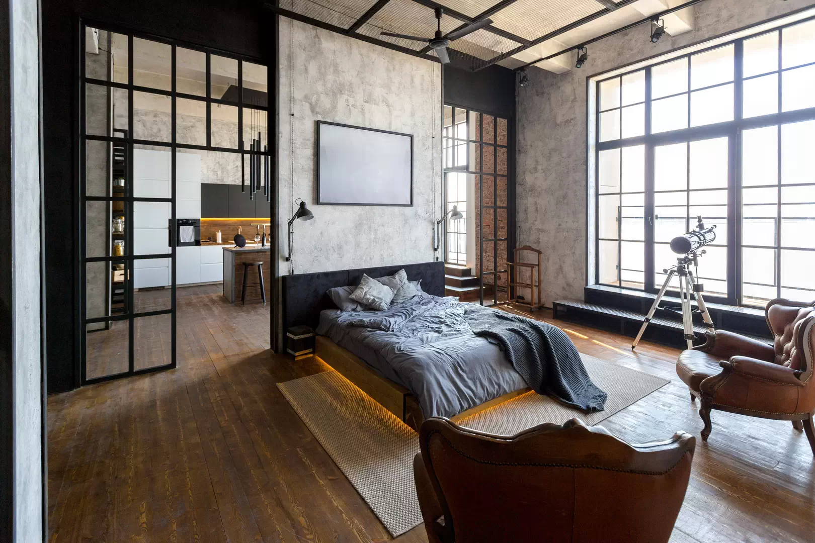 Квартира с кухней за стеклянной перегородкой
