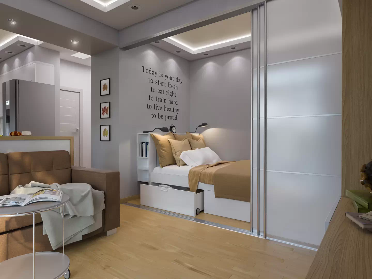 Малометражка со спальней за раздвижной перегородкой